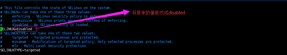 修改:vim /etc/selinux/config
