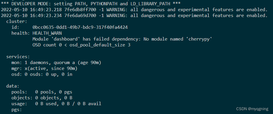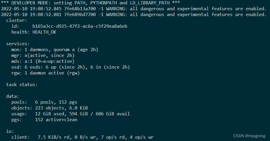 5.1 ceph部署开发集群脚本:vstart.sh 该脚本利用本地IP和不同端口配置MON、MGR、OSD等。在build目录下,部署新集群。