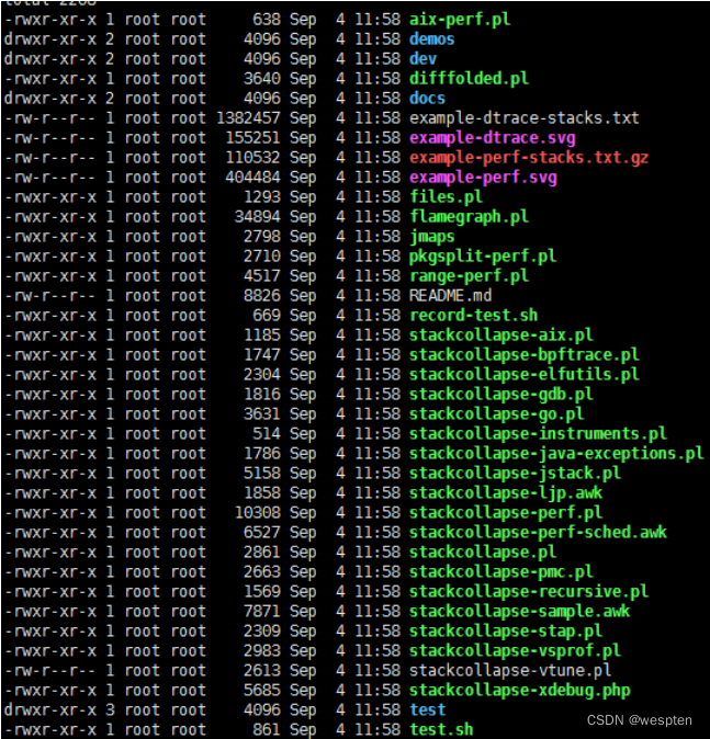 说明:打开文件夹,里面大部分是perf语言写的脚本,生成火焰图后续会用到,如下图,右图为各pl文件用途释义。
