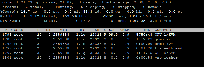 问题的分析: 使用top -p xxxx 发现虚拟机的进程CPU利用率是100%,进程一直运行在CPU1上,而且利用率一直是100%左右。所以这个适合火焰图的on-cpu的情况,可以进行分析on-cpu的情况