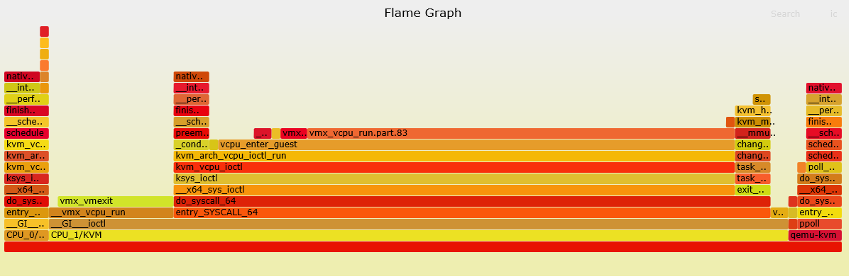 从火焰图中,看到vmx_cpu_run.part.83采样比较多,主要消耗都在这个函数中。