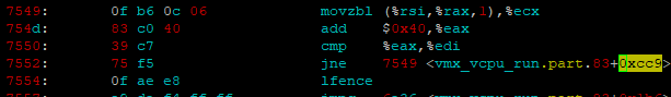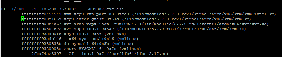 这个函数采样中,还有其他的地址占用时间,但是最多时间: vmx_cpu_run.part.83+0xcc9.