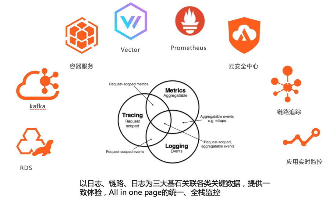 随着云原生浪潮,可观测性概念正深入人心。但仍离不开日志、指标、链路这三类可观测领域的数据基石。做过运维或 SRE 的同学经常遇到这样的问题:半夜被拉到应急群里,披头盖地地被质问为什么数据库不工作了,在没有上下文的情况下,无法立刻抓住问题核心。我们认为好的可观测性平台应该帮助用户很好地反馈上下文,就像 Datadog 的 CEO 说的那样:监测工具不是功能越多功能越好,而是要思考怎样在不同团队和成员之间架起桥梁,尽可能把信息放在同一个页面中(to bridge the gap between the teams and get everything on the same page)。