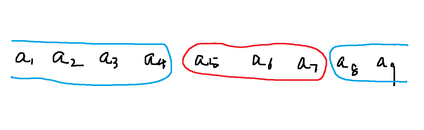 如果蓝色部分是最大连续值,那么红色部分一定是最小的连续段!!