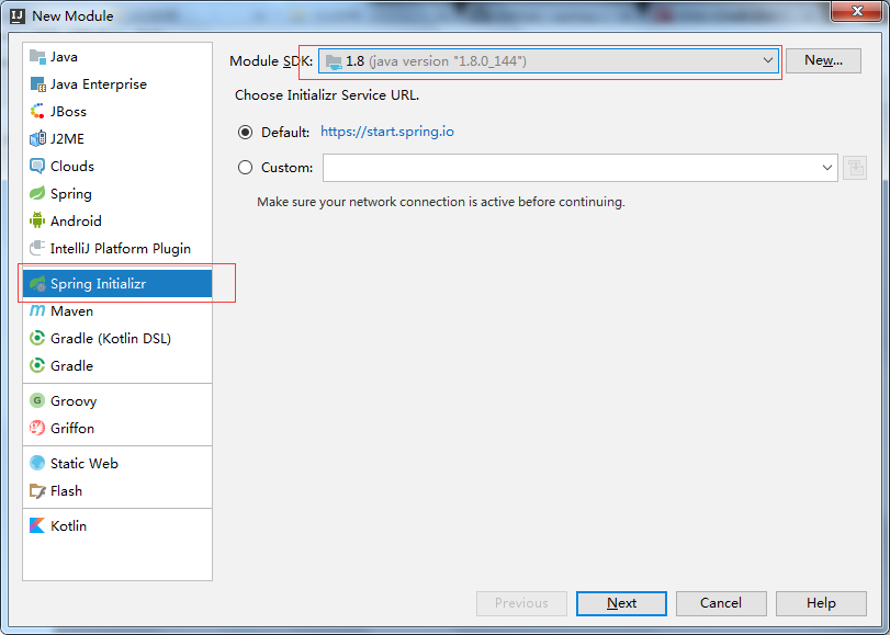 一.在你建立的工程下创建 Module 选择Spring initializr创建。