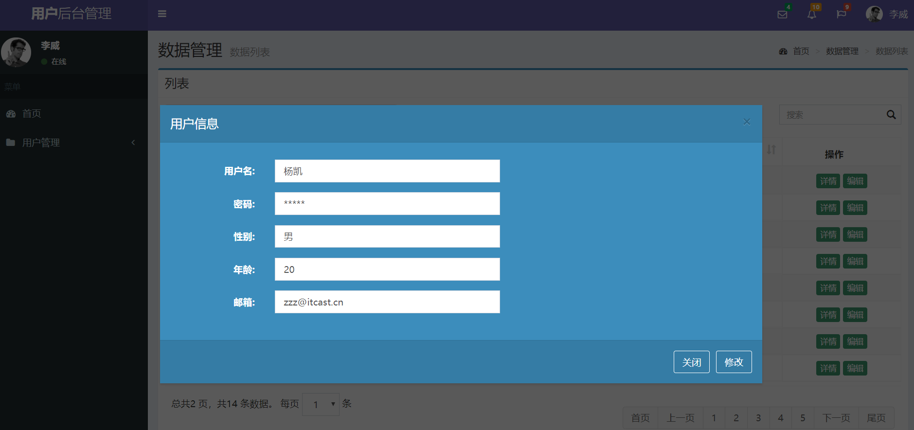 项目修改展示页面截图: