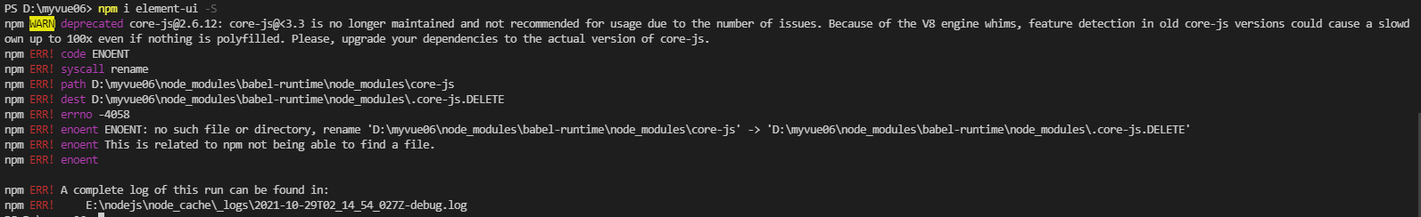 no such file or directory, rename ‘D:myvue06 ode_modulesabel-runtime ode_modulescore-js’ -> ‘D:myvue06 ode_modulesabel-runtime ode_modules.core-js.DELETE’