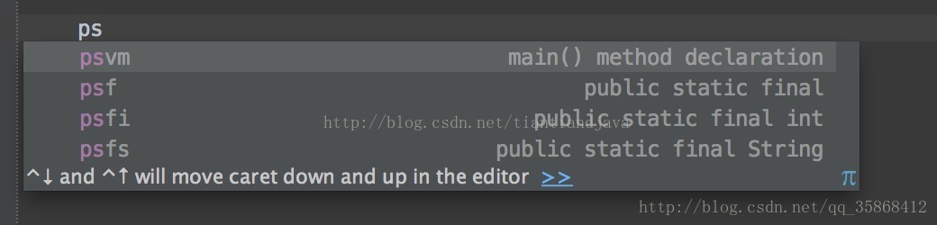 在IDEA中输入psvm 也就是public static void main的首字母。