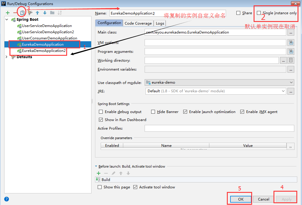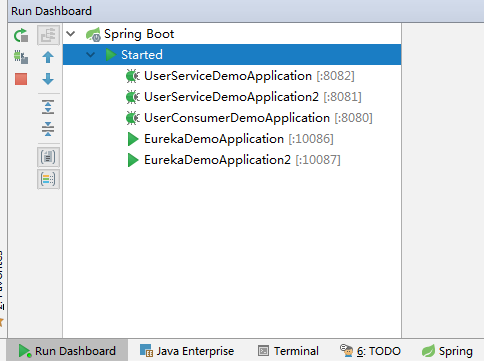 其实也很简单,根据现有的配置启动其中一个实例,之后找到该工程对应的配置文件(我用yml文件)application.yml修改端口及其他配置启动另一个实例即可(不仅仅修改端口,比如eureka 服务除了修改端口还要配其他eureka服务,因为它们是相互注册的)