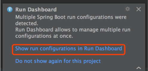 此时在IDEA面板右下角会有一个Run Dashboard的弹框,选择Show run configurations in Run Dashborad这一项