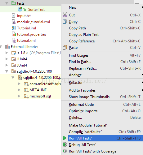 对于运行在应用程序中的所有测试,请右键单击测试文件夹,然后单击运行“所有测试”。