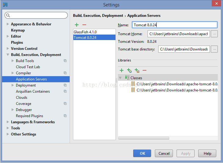 在部署应用程序到应用程序服务器之前,请确保配置此应用程序服务器在 File(文件) | Settings(设置) | Build(生成), Execution(执行), Deployment(部署) | Application Servers(应用程序服务器)