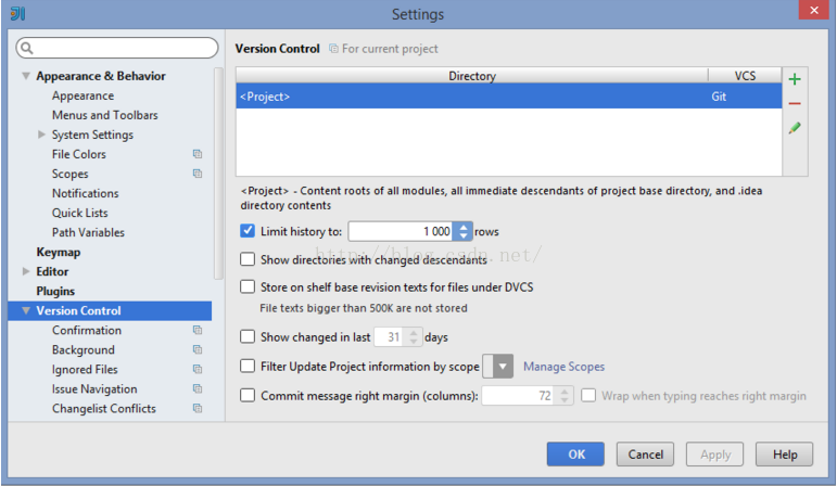 除了一般的VCS(版本控制系统)设置,在这里你可以配置所有对应于您要使用特定的VCS(版本控制系统)。