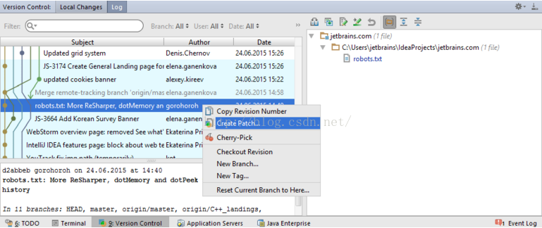 IDE允许您添加,删除,提交,回复,管理分支,查看历史,推,拉,做很多其他的事情。有些操作在版本控制通过VCS称为工具窗口提供 显示更改视图。