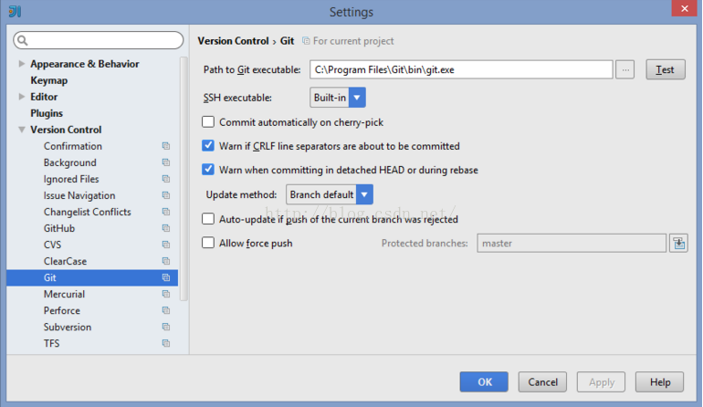 IntelliJ IDEA 支持 Git, CVS, Mercurial(一种轻量级分布式版本控制系统,采用 Python 语言实现,易于学习和使用,扩展性强),Perforce(一个功能比较强大的版本控制软件,而且是跨平台的,支持 Windows. *nix, Mac,连 cygwin 的版本都有一个) 等.
