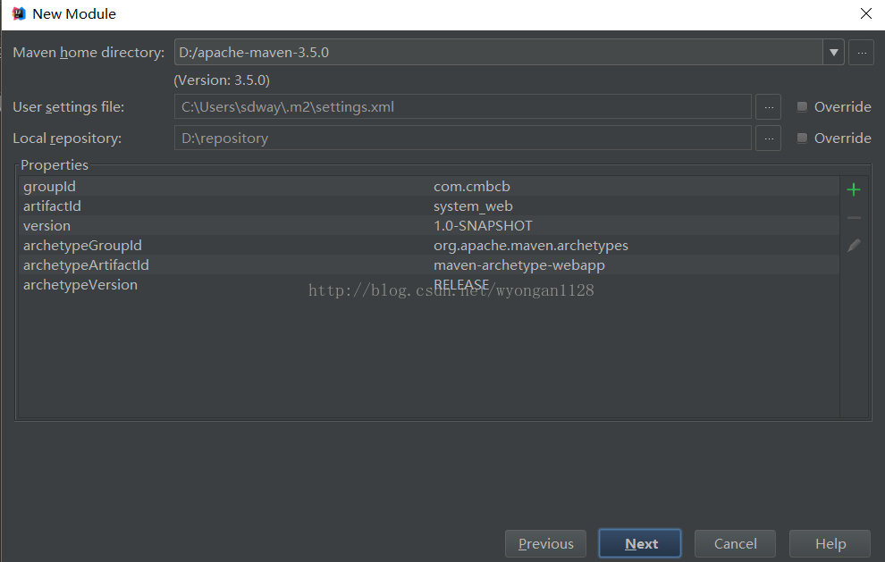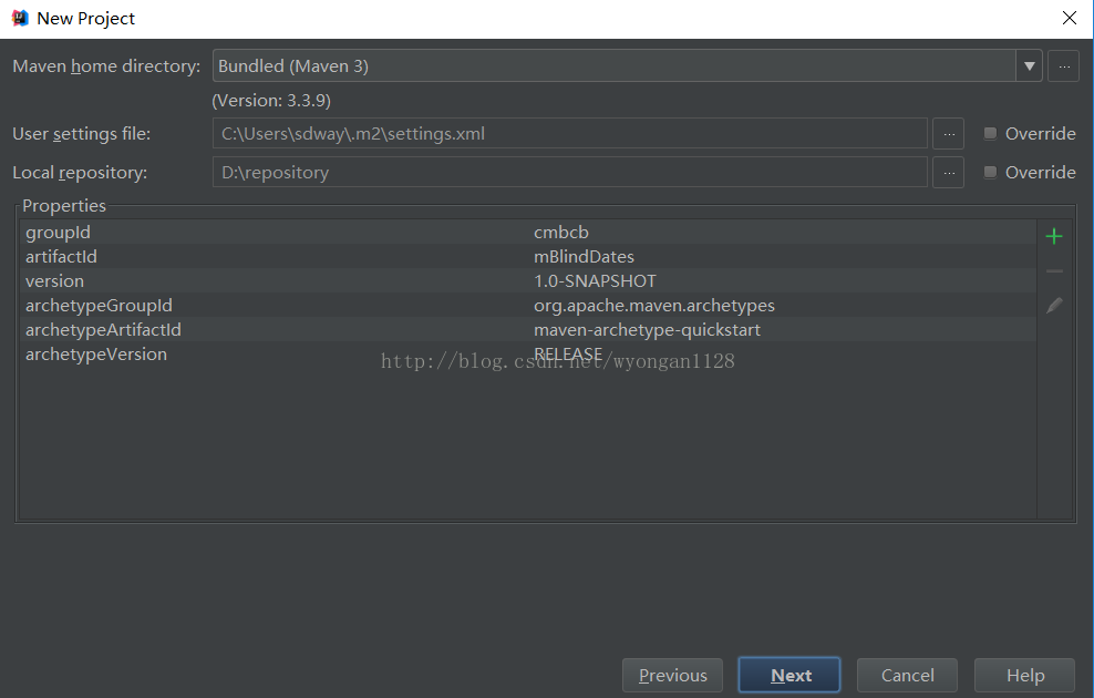 命令执行完成之后可以看到在当前目录(C:Documents and SettingsAdministrator)生成了mBlindDates目录,里面有一个src目录和一个pom.xml文件,将src文件夹删除,然后修改pom.xml文件,将<packaging>jar</packaging>修改为<packaging>pom</packaging>,pom表示它是一个被继承的模块,修改后的内容如下: