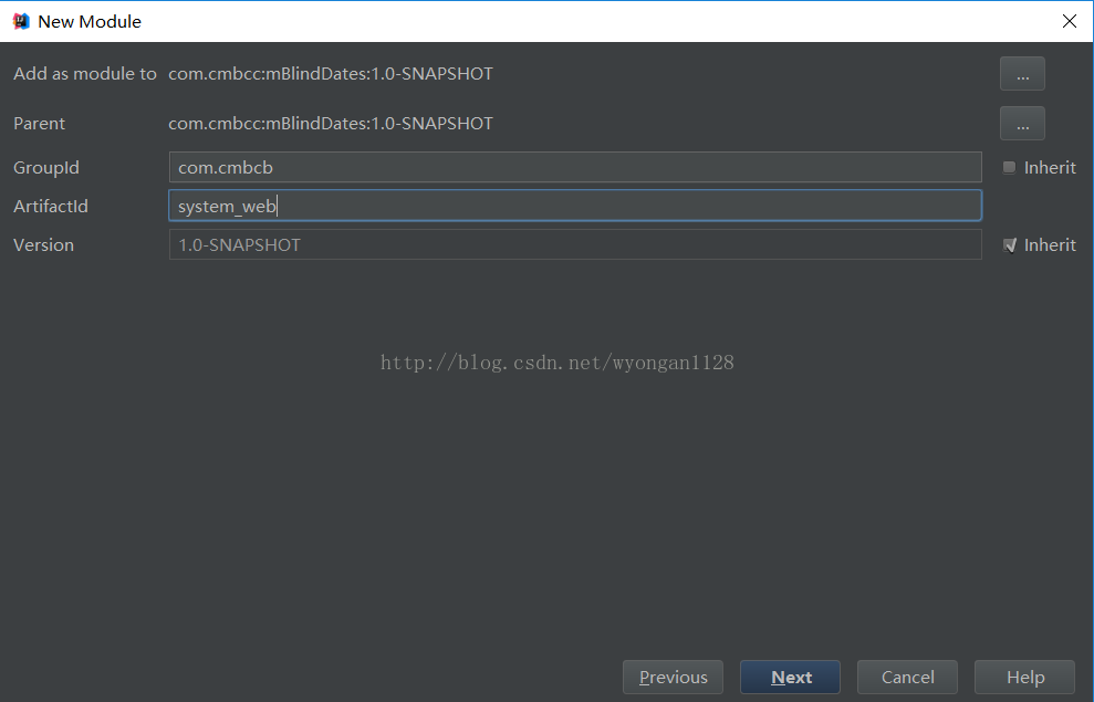 修改system_domain目录中的pom.xml文件,把<groupId>com.cmbcb</groupId>和<version>1.0-SNAPSHOT</version>去掉,加上<packaging>jar</packaging>,因为groupId和version会继承mBlindDates中的groupId和version,packaging设置打包方式为jar