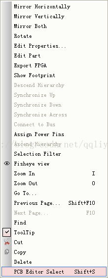 在原理图选中一个元件并在右键选择菜单中的