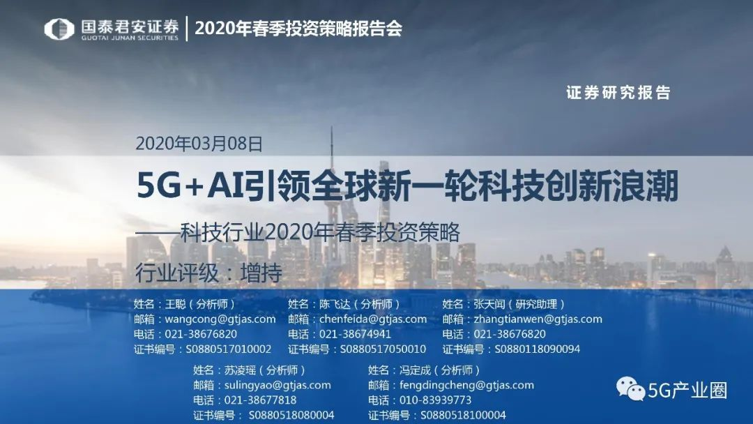 今天,我们分享一份来自国泰君安证券的科技行业2020年春季投资策略报告——《5G+AI引领全球新一轮科技创新浪潮》。