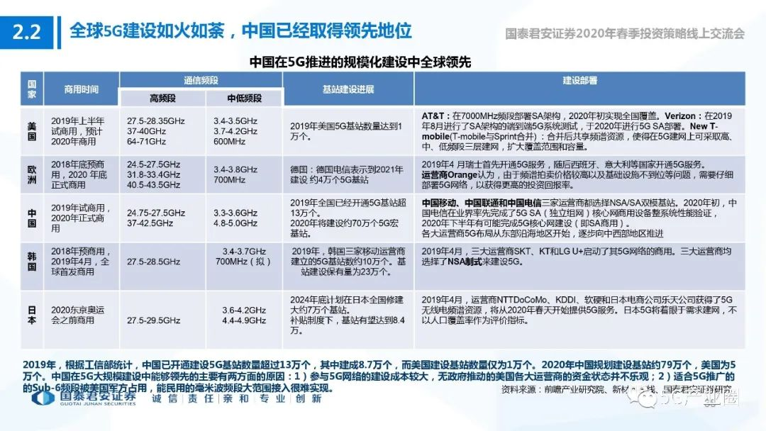 2.2 全球5G建设如火如荼,中国已经取得领先地位