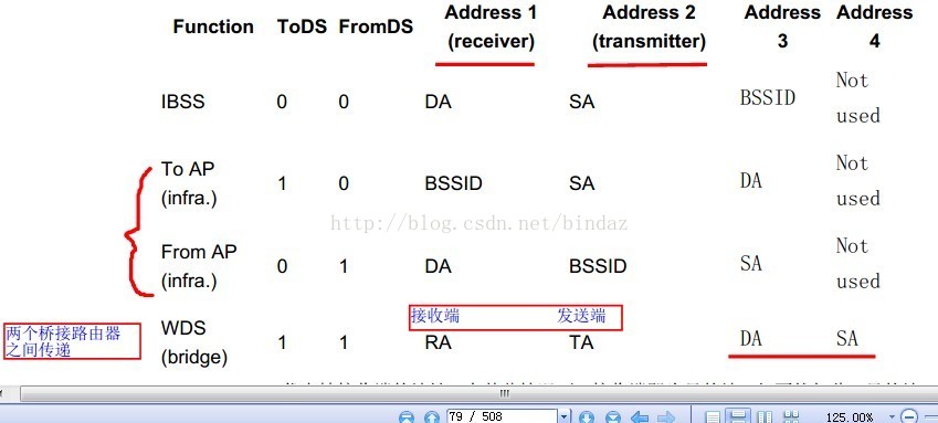 当数据是发向路由器的:发送端地址就是实际发送设备的地址,接收端地址是路由器的mac地址(bssid),附加地址是实际的目的地址.