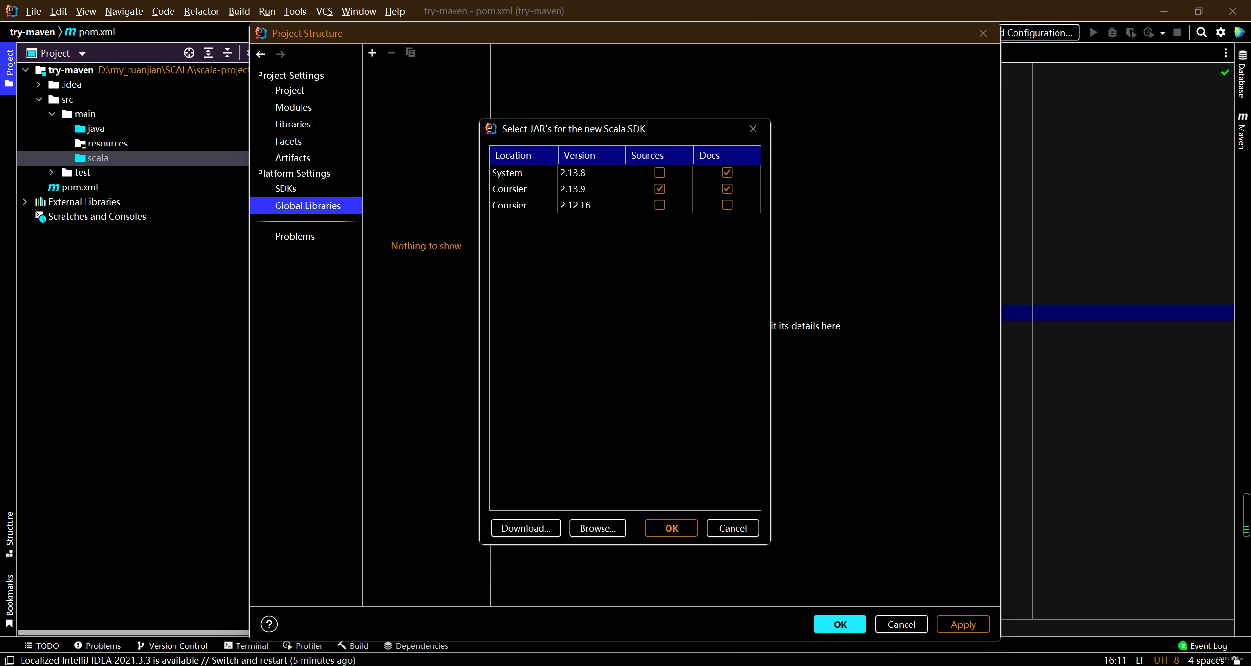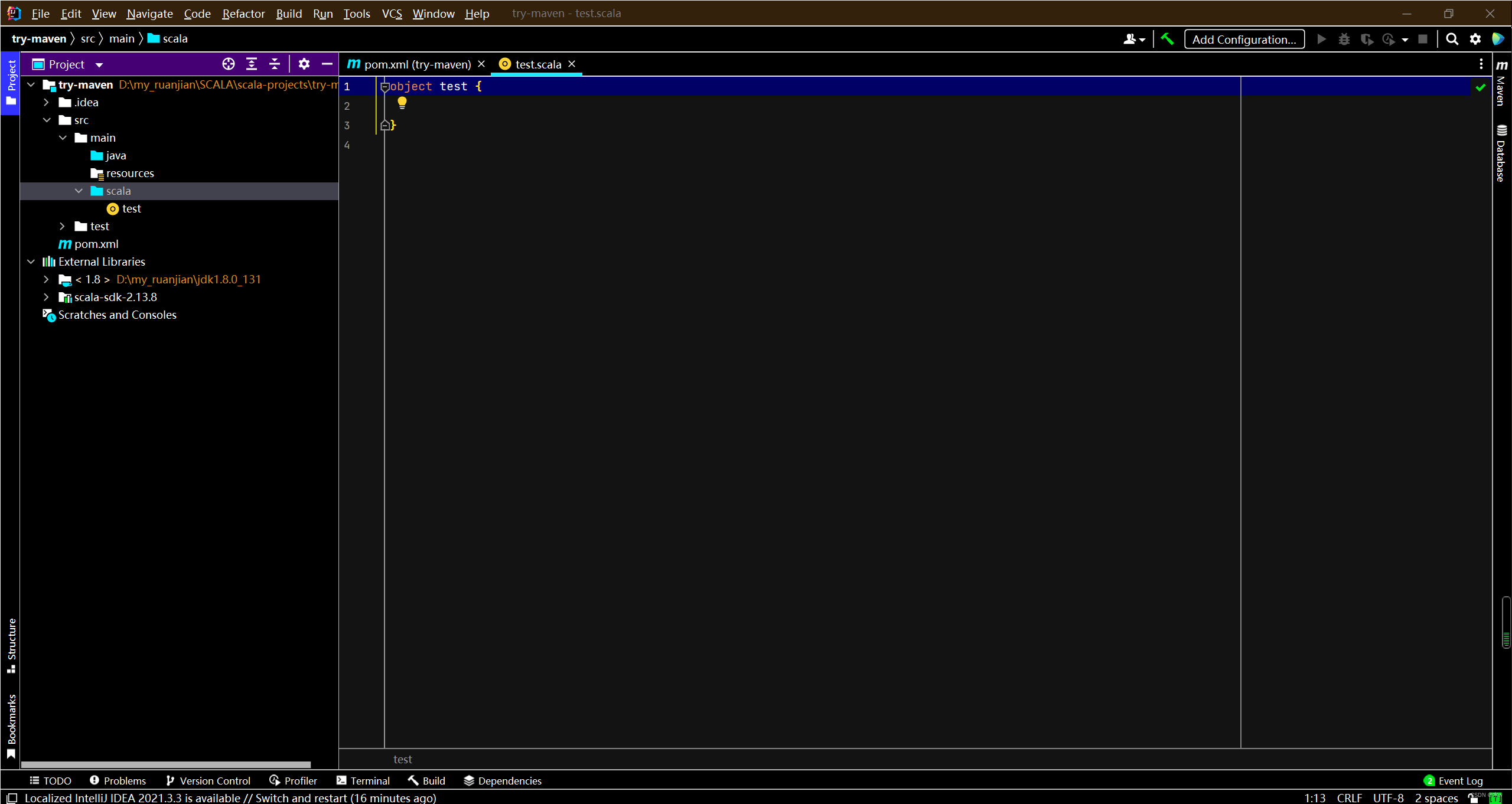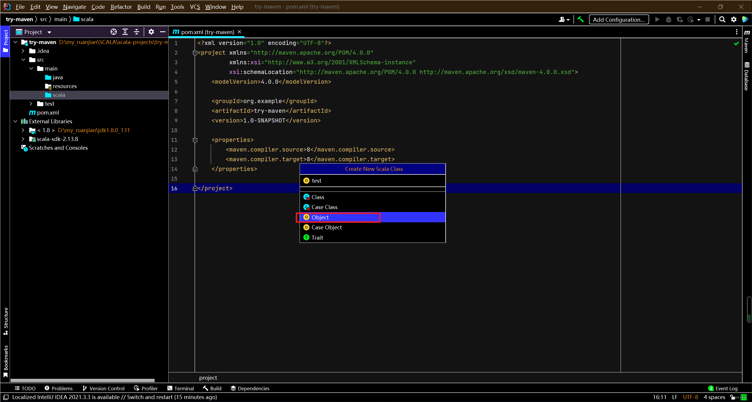 以上就是欣喜白云最近收集整理的关于idea2021.3.3 创建maven-scala项目并解决遇到的问题:通过add frameworks support找到不到scala插件idea 创建maven-scala项目的全部内容,更多相关idea2021.3.3内容请搜索靠谱客的其他文章。