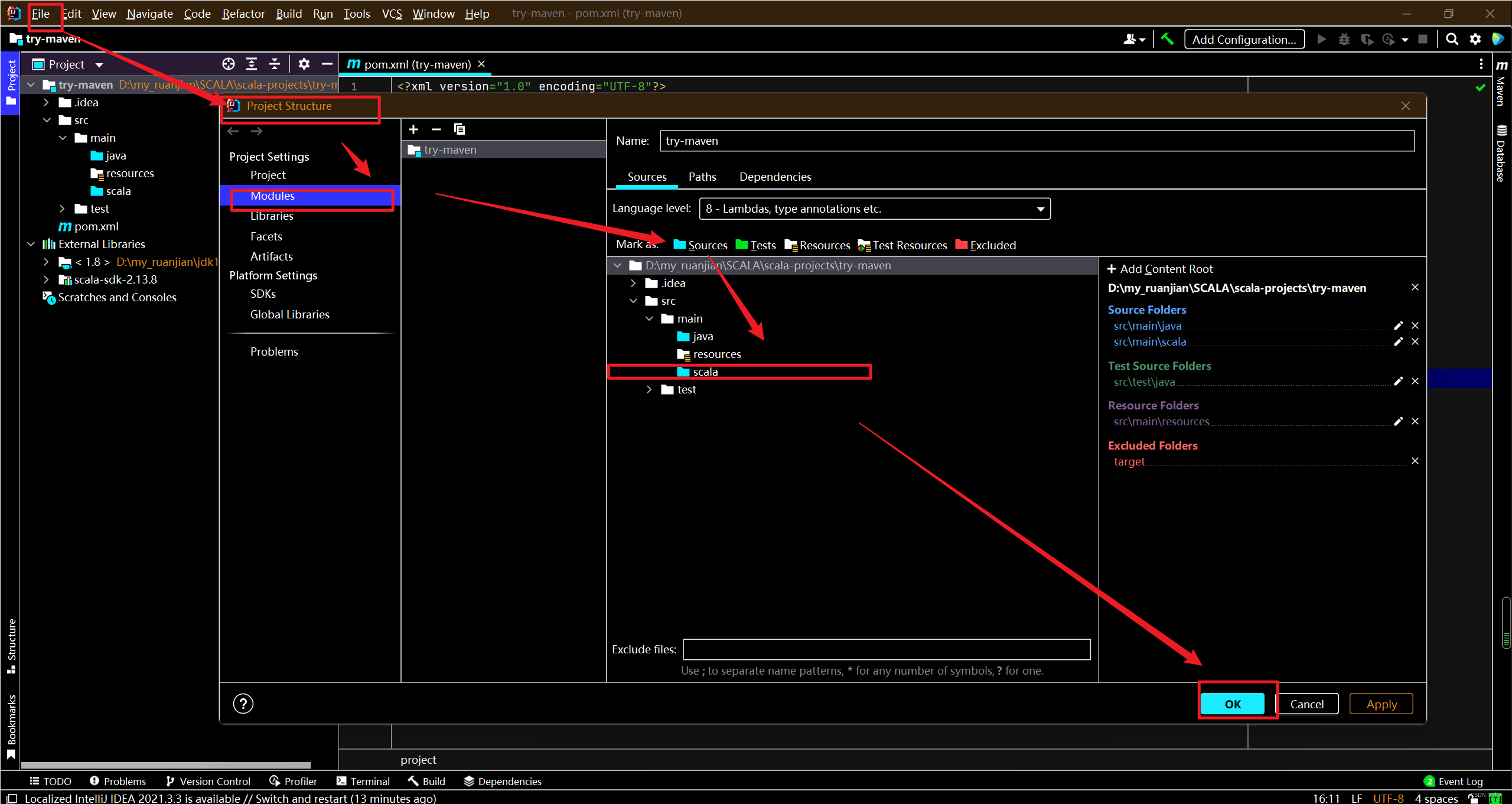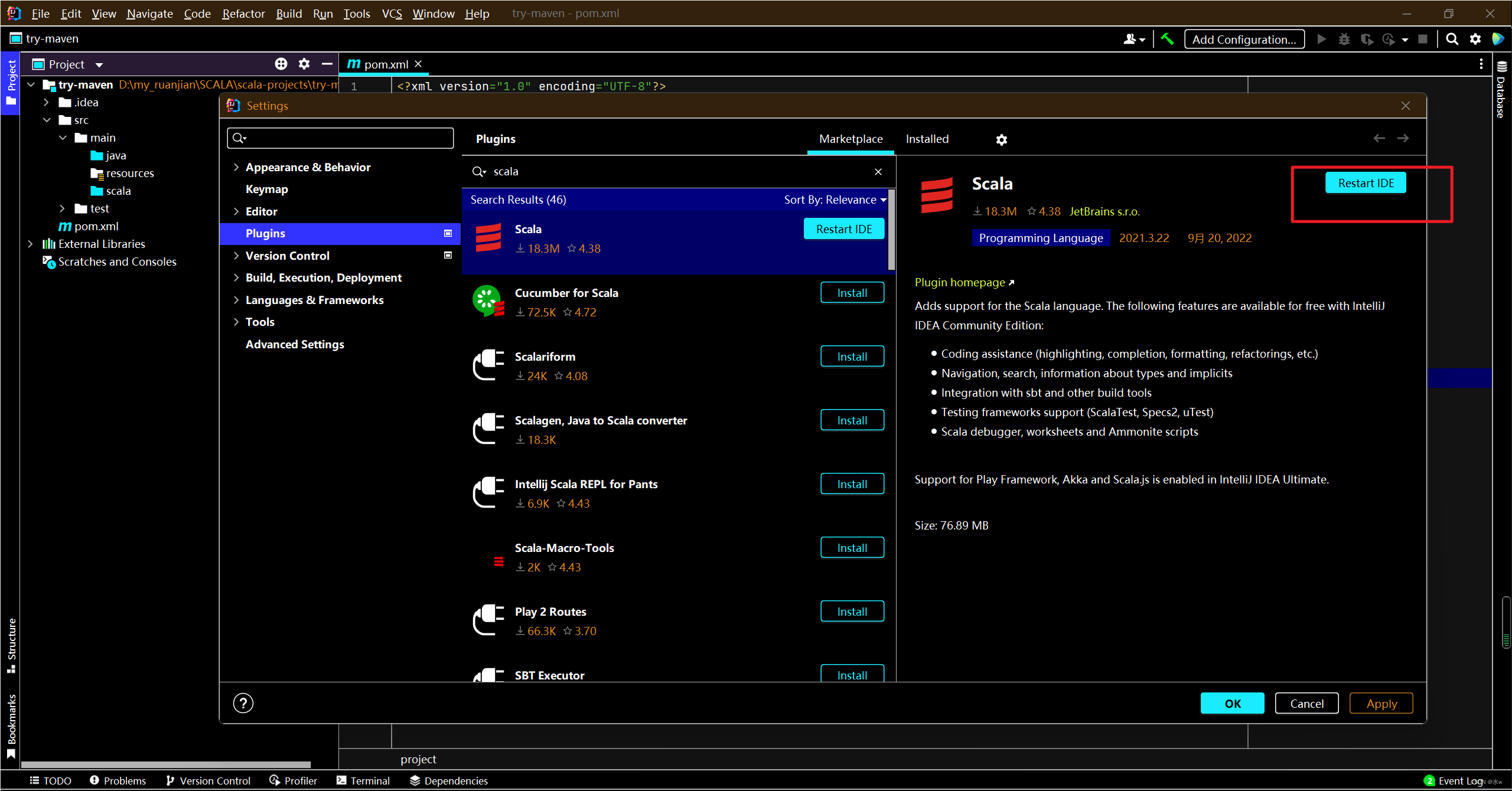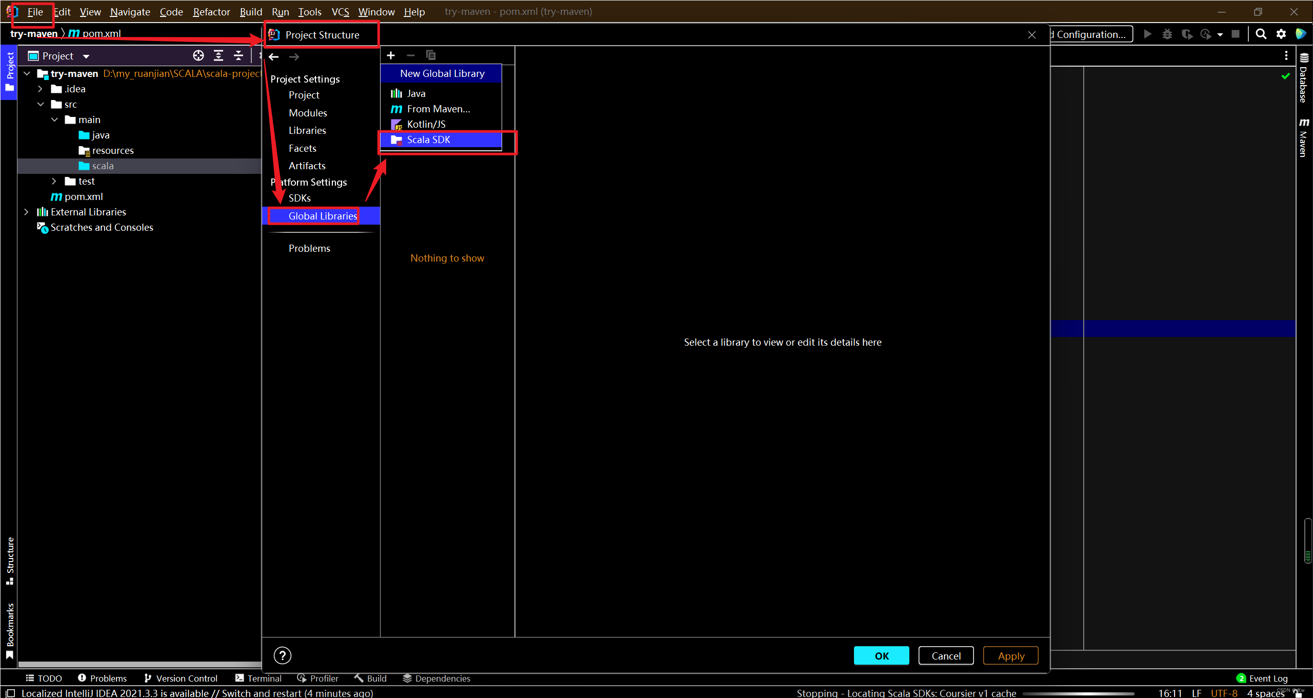 以上就是欣喜白云最近收集整理的关于idea2021.3.3 创建maven-scala项目并解决遇到的问题:通过add frameworks support找到不到scala插件idea 创建maven-scala项目的全部内容,更多相关idea2021.3.3内容请搜索靠谱客的其他文章。