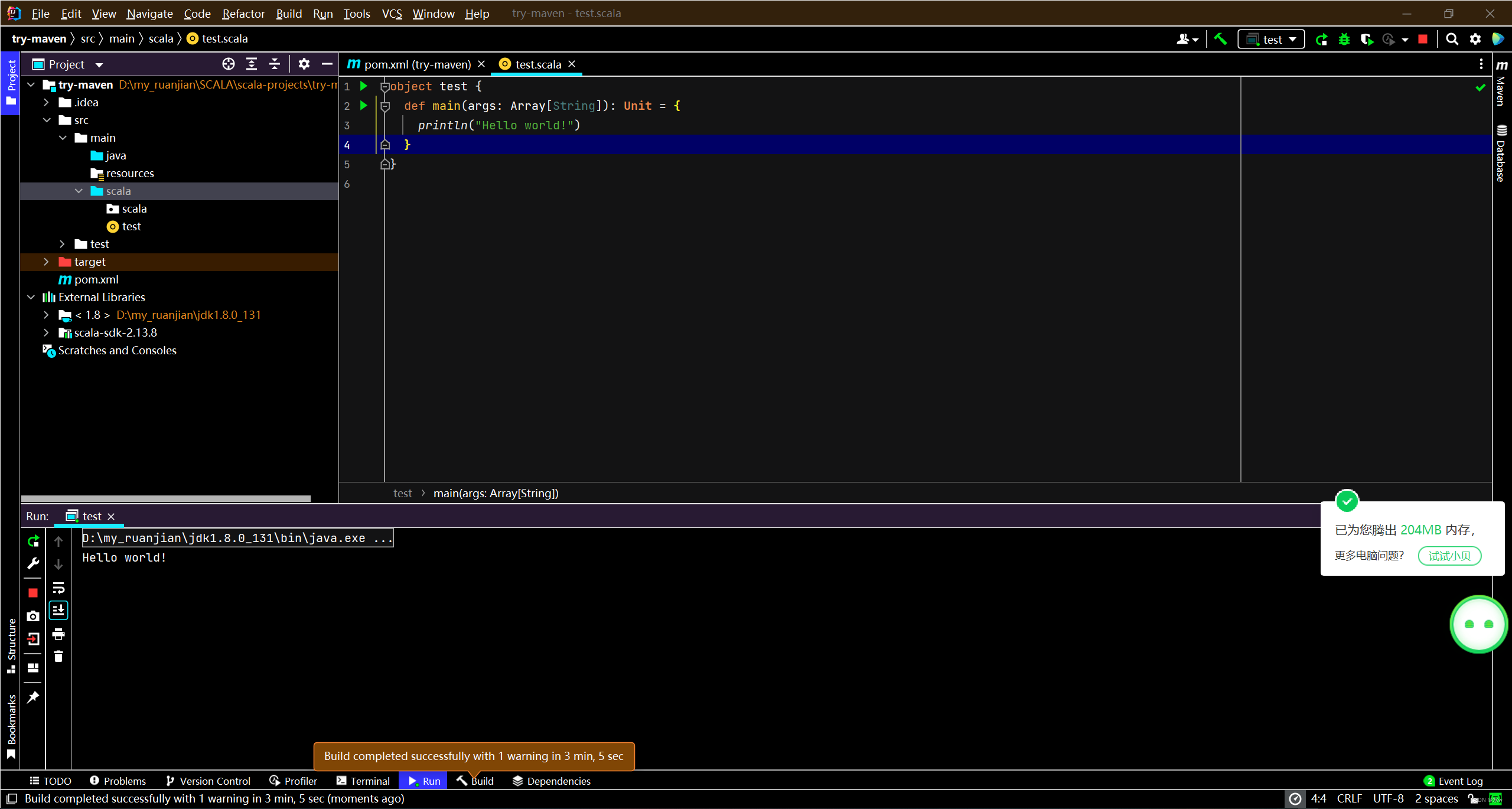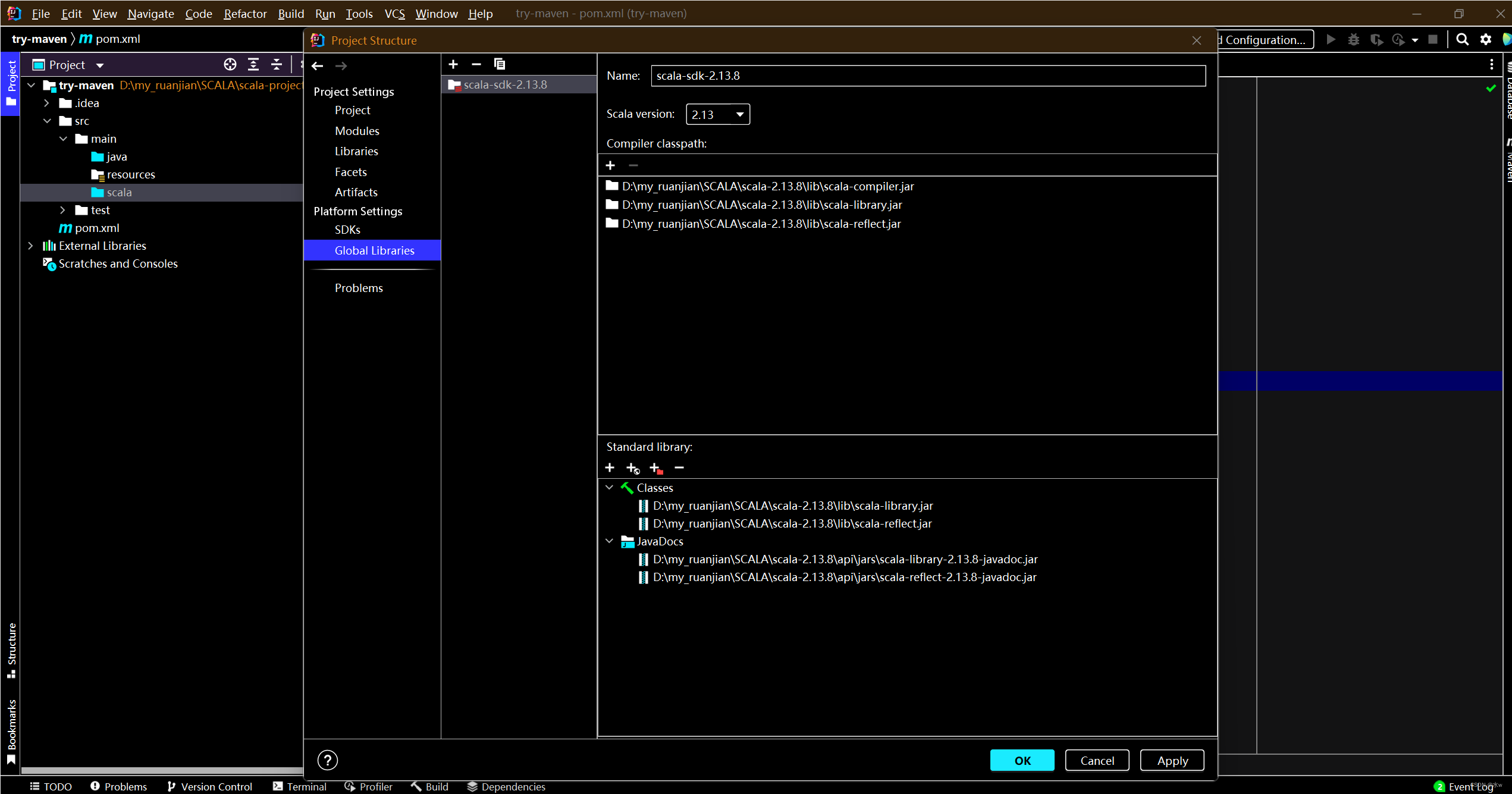 以上就是完整的IDEA配置Scala并创建Scala的maven项目过程。