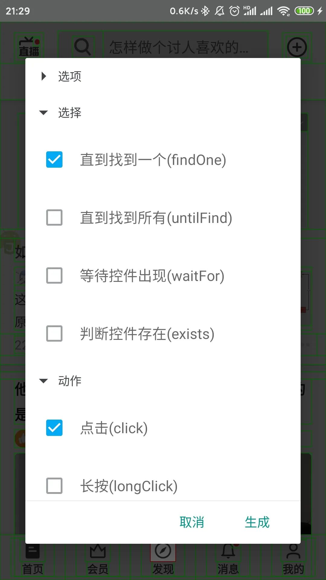 比如我们现在点击发现按钮,会有弹窗,点击生成代码,如下图