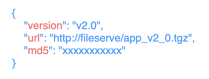 Bingo - V2.0 版本的升级包诞生了:app_v2_0.tgz,上传到文件服务器上之后,地址为:http://fileserve/app_v2_0.tgz。