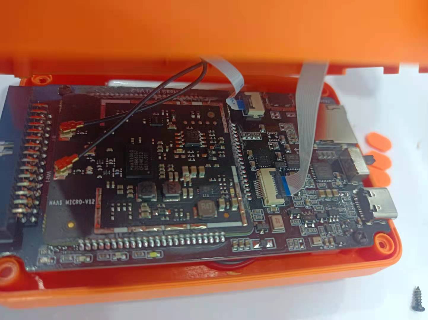 2. 从整体的外观开看是十分的小巧轻便的,同时配色也选用了阿里橙,为了使用者的方便体验,开机即可使用,开机按键在左侧,内置了10款应用场景可以体验。相比较与HaaS100,HaaS600等开发板来说,EDU K1将各种传感器和液晶等也集成连接了起来,更贴合学生使用的需求。