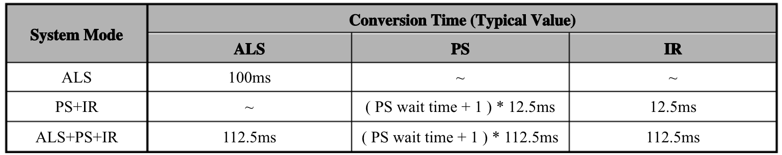 在这种模式下,AP3216C只对光强度进行量测 - PS+IR模式