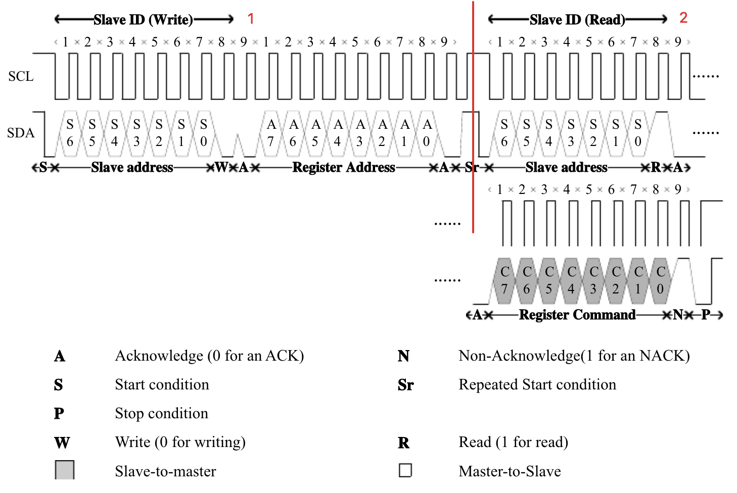 AP3216C寄存器读取的整个I2C传输过程中,详细数据传输过程如下图所示: