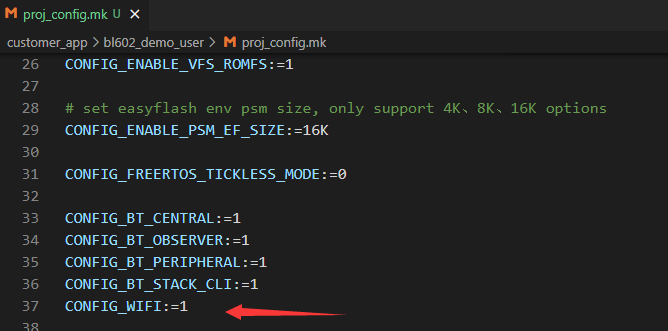 1、打开工程目录下的proj_config.mk文件,配置CONFIG_WIFI:=1