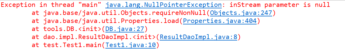 数据库连接报错,仔细检查代码没有发现问题,翻译异常信息,发现是输入流参数为空