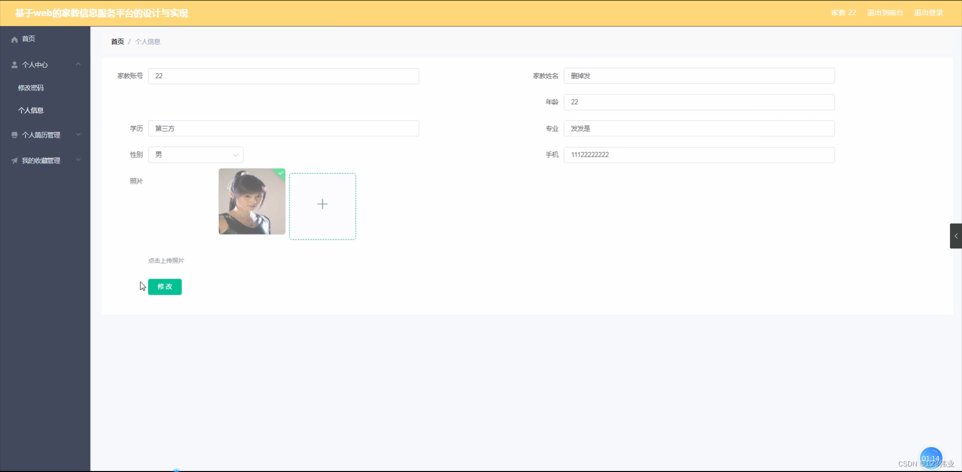 JAVA毕设项目web家教信息服务平台设计与实现(Vue+Mybatis+Maven+Mysql+sprnig+SpringMVC)