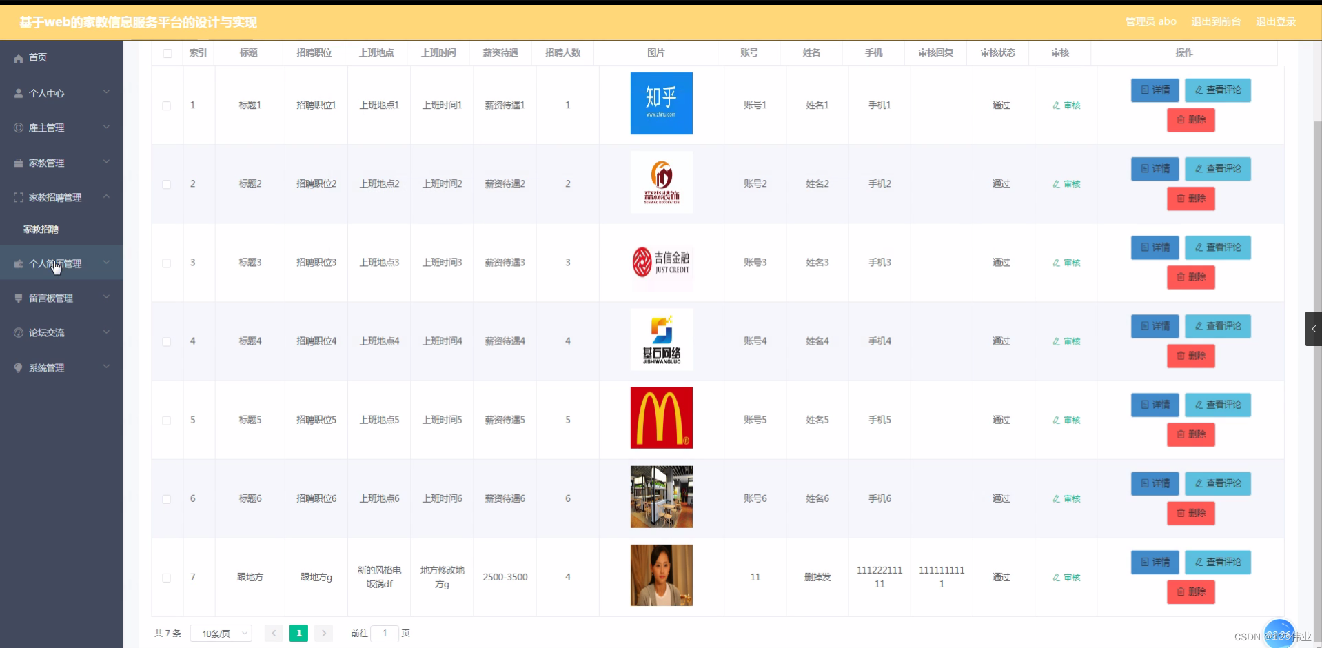 以上就是细腻衬衫最近收集整理的关于JAVA毕设项目web家教信息服务平台设计与实现(Vue+Mybatis+Maven+Mysql+sprnig+SpringMVC)的全部内容,更多相关JAVA毕设项目web家教信息服务平台设计与实现(Vue+Mybatis+Maven+Mysql+sprnig+SpringMVC)内容请搜索靠谱客的其他文章。