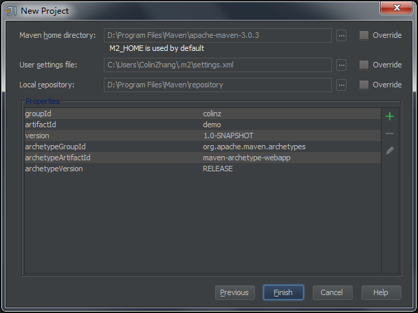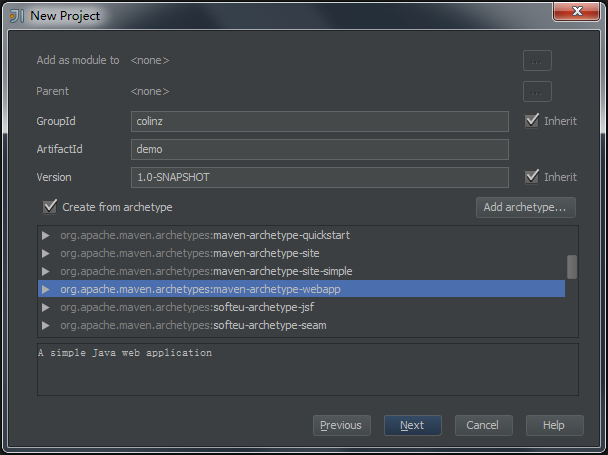 选择项目使用的Archetype为“maven-archetype-webapp”,这里也可以随便修改下GroupId等信息。