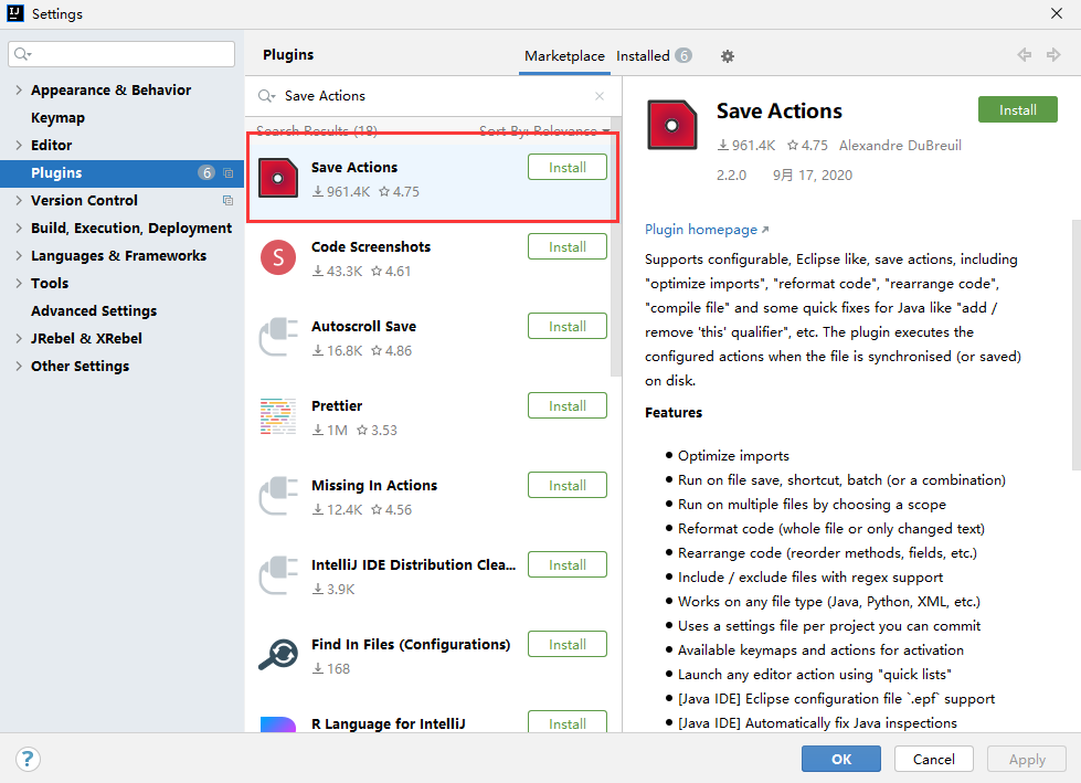 插件下载地址:https://plugins.jetbrains.com/plugin/7642-save-actions