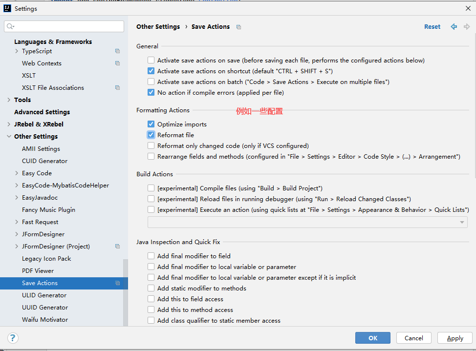 以上就是大意鞋垫最近收集整理的关于IDEA插件系列(54):Save Actions插件——可配置的保存操作的全部内容,更多相关IDEA插件系列(54):Save内容请搜索靠谱客的其他文章。