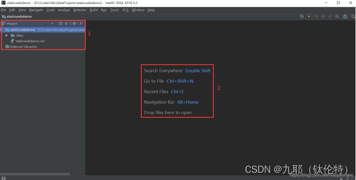 如上图所示,打开 IntelliJ IDEA 后,首先迎接我们的就是这个界面: