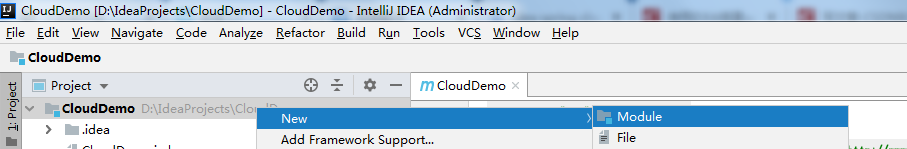 ①在CloudDemo项目上新建Module