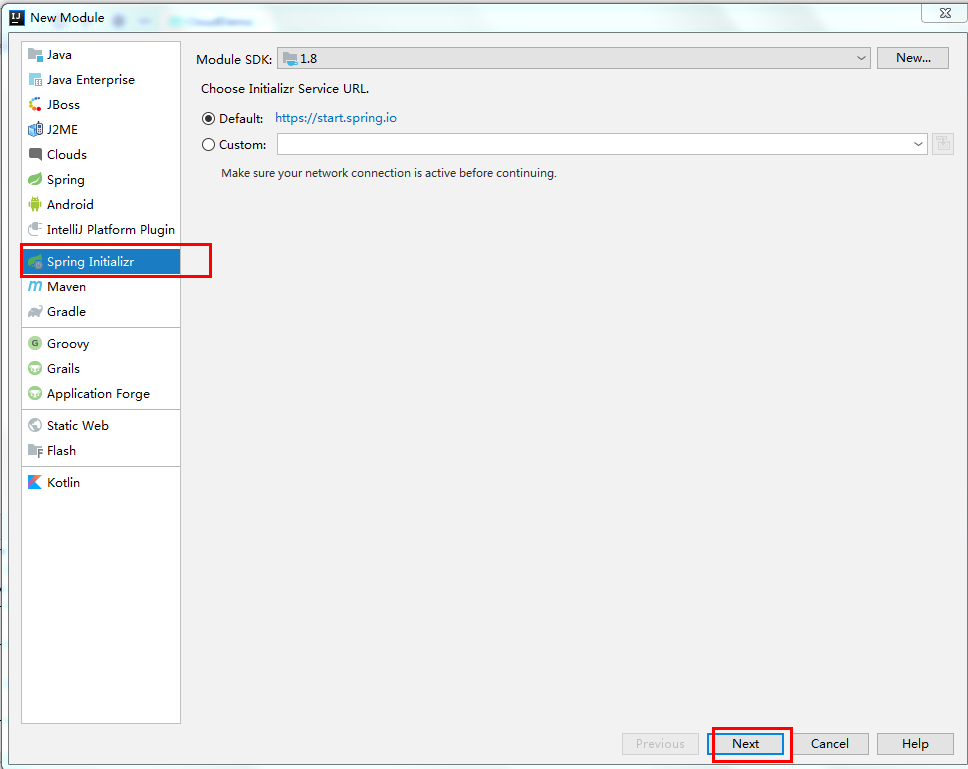 ②选择Spring Initializr,点击Next
