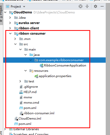 ①新建项目ribbon-consumer