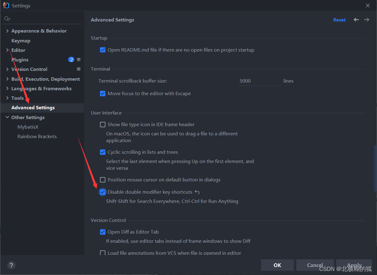 新版idea只需要在设置高级选项这里关闭就可以啦
