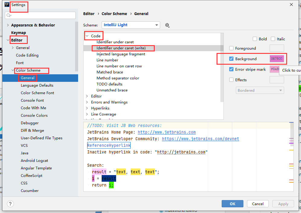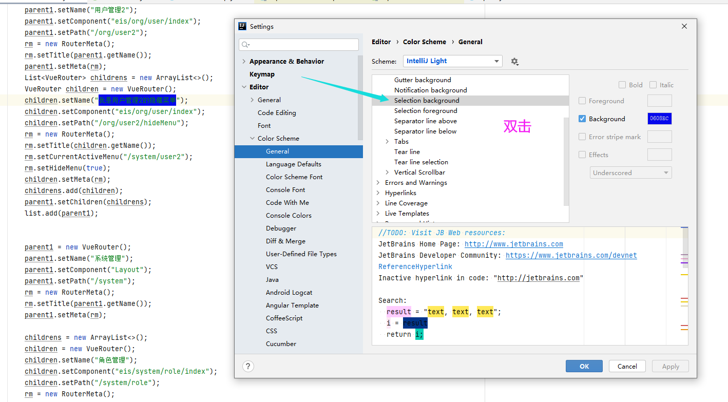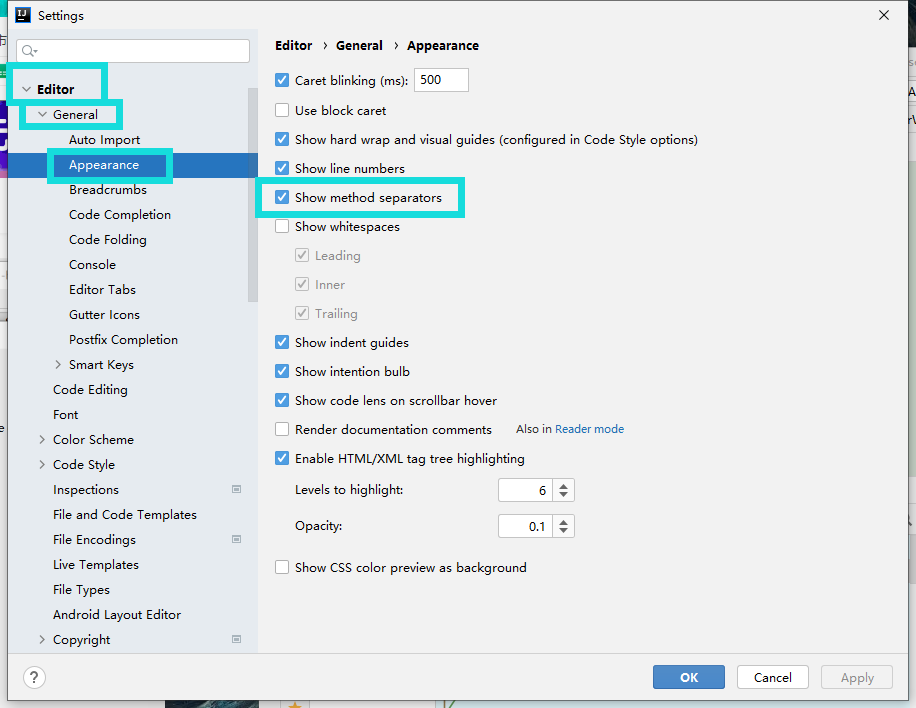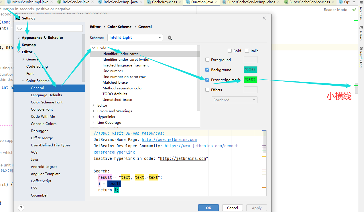 以上就是淡然飞机最近收集整理的关于IDEA各种便于开发的设置(持续更新,欢迎大家分享补充)一、修改 双击shift 全局搜索分三步:二、光标单击选中背景色三、光标双击选中背景色 四、光标单击选中数据变量时,右侧对应的小横条颜色 五、设置变量定义的位置颜色六、单行、多行注释颜色修改七、背景颜色修改八、添加插件方式一九、左侧文件夹工具栏不见了!!! 十、底部debug工具栏不见了!!!十一、横向代码长度起定位作用的竖线效果:十二、IDEA方法与方法之间添加显示横线效果:十三、try-catch失效后手动添加try-catch快捷键 的全部内容,更多相关IDEA各种便于开发的设置(持续更新,欢迎大家分享补充)一、修改 双击shift内容请搜索靠谱客的其他文章。