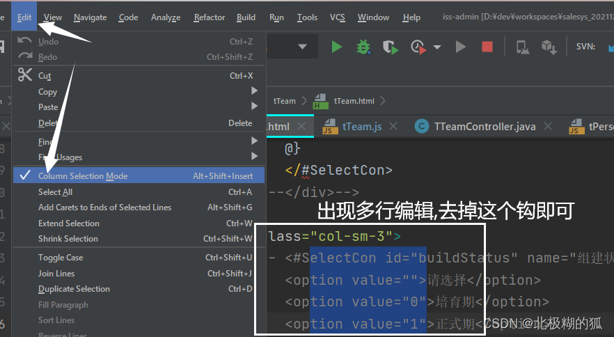 十九、idea不小心按到多行编辑选择,取消的步骤