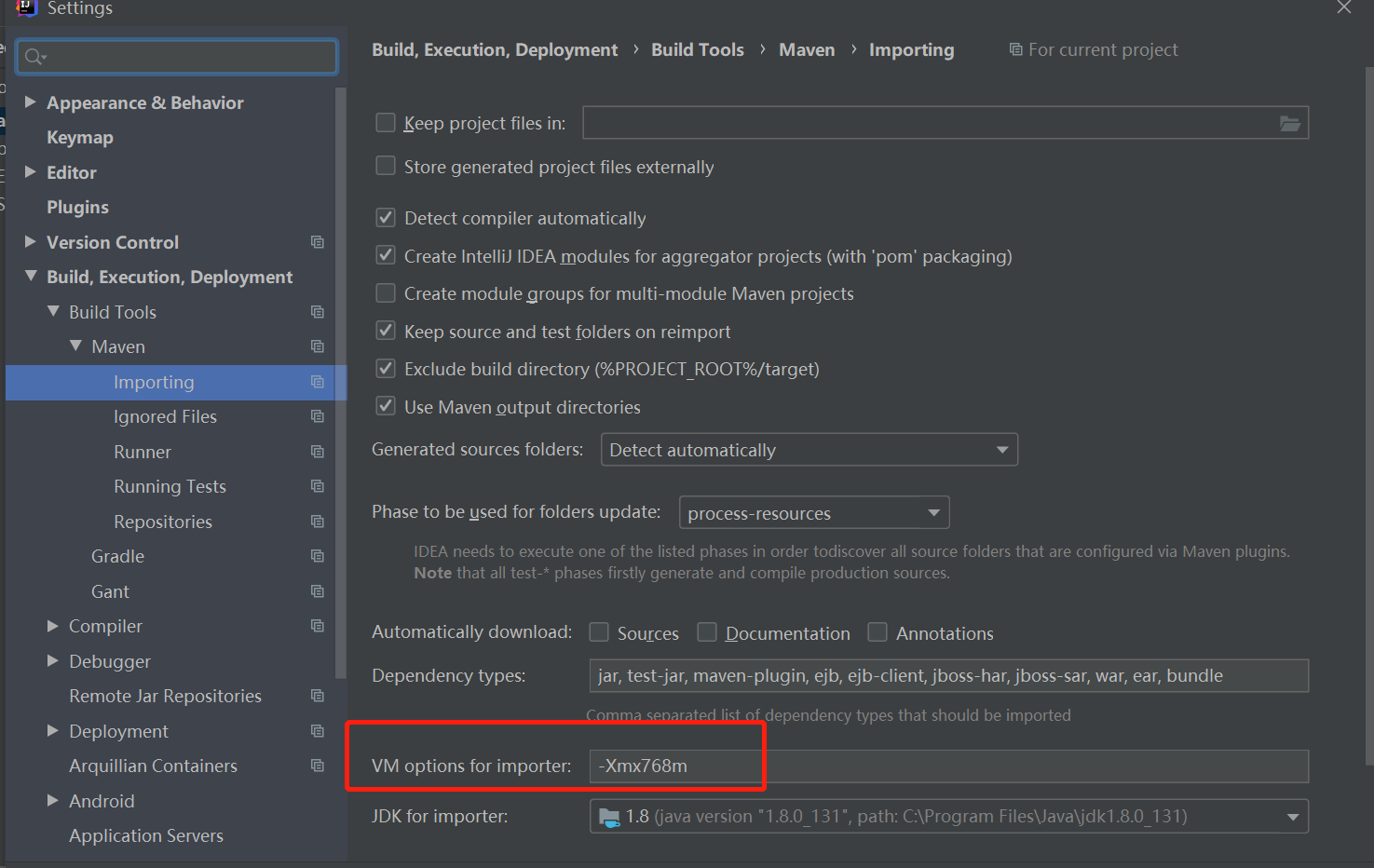 2、点击maven下面的Importing ,里面有一个,VM options for importer配置,