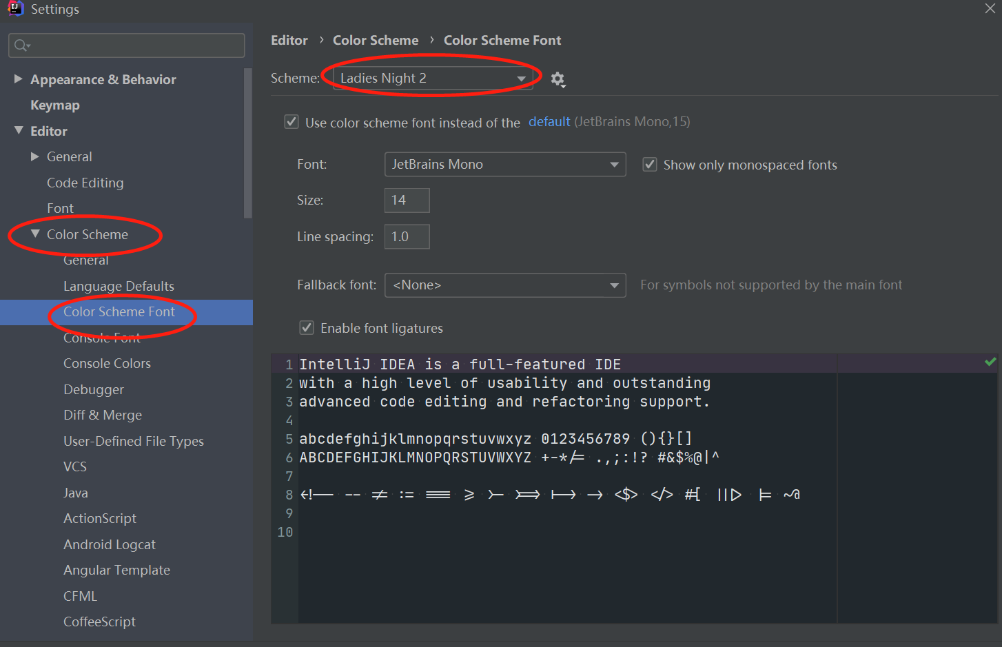 4、然后,选中 File -->Settings -->Editor -->Color Scheme 选中刚才导入的主题颜色,