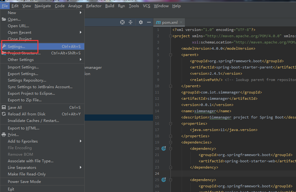 创建好项目后,我们需要将项目的Maven仓库改成自己本地的Maven仓库,在File—>Settings